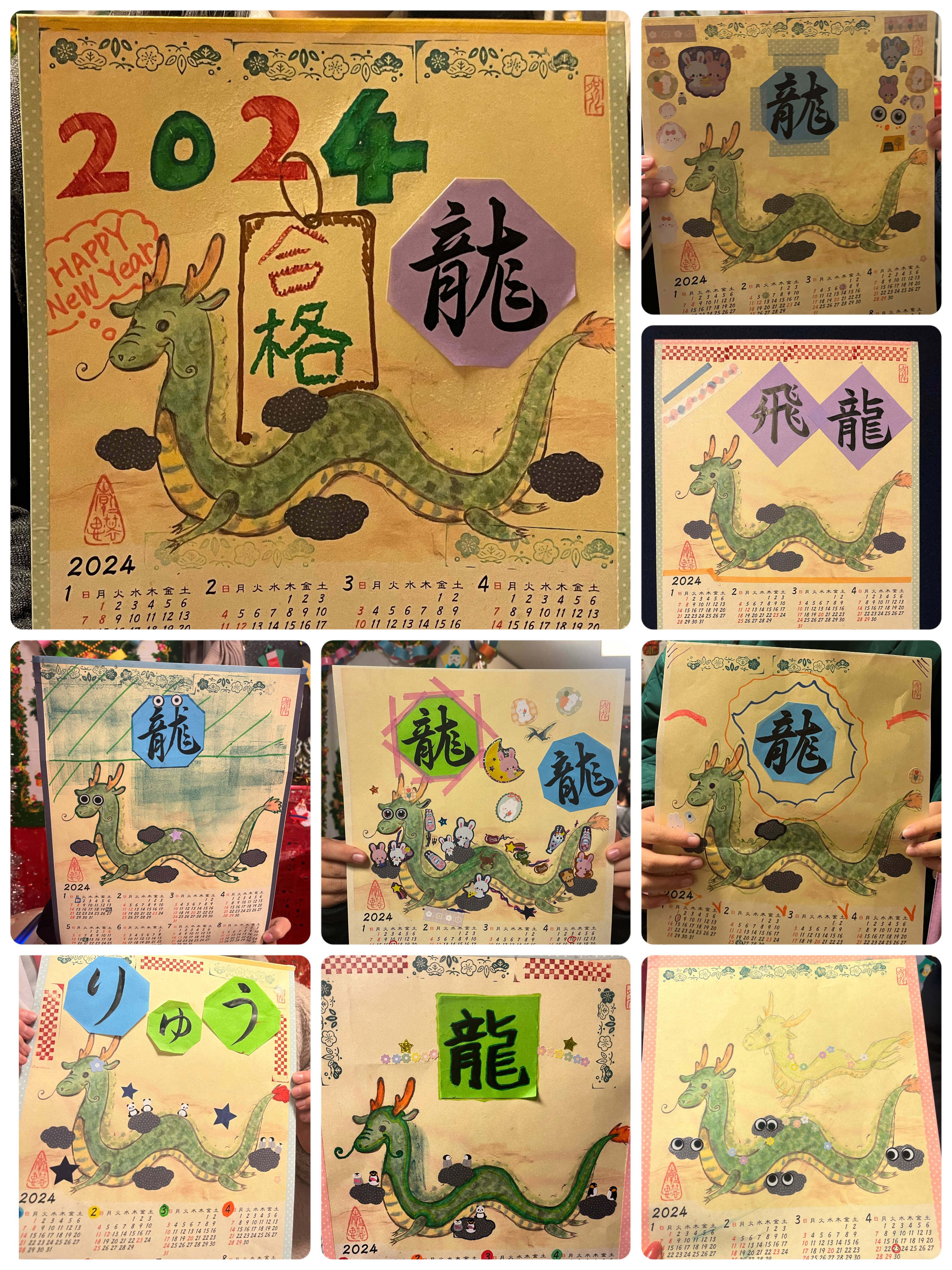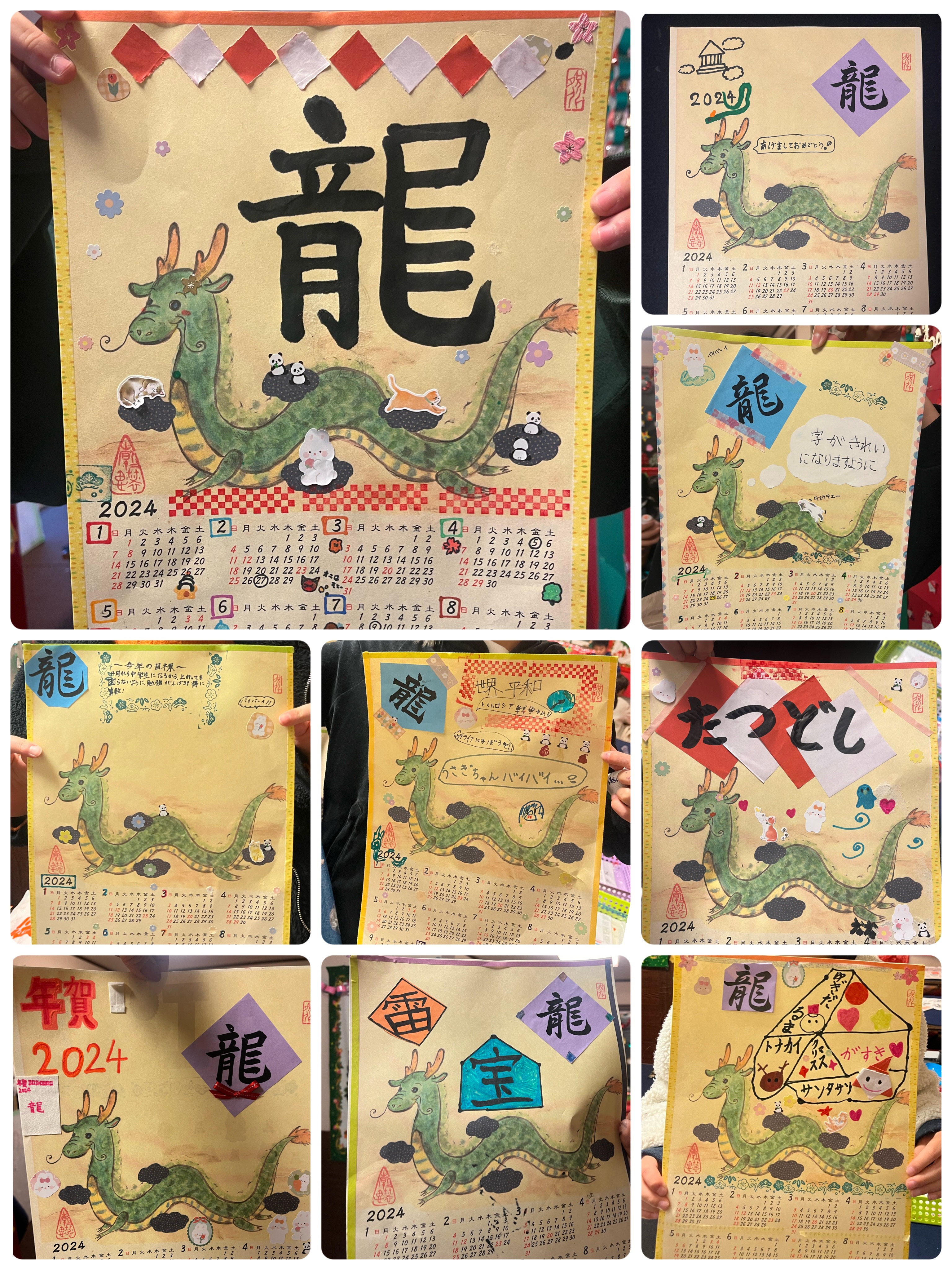 2023年12月31日 / 最終更新日時 : 2024年1月13日 momotsuyumi ブログ 辰年のカレンダー作っています。 教室の生徒さん達と、年末から恒例行事のカレンダーを作っています。 可愛い龍のカレンダーが出来ていますよ♫